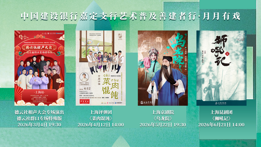 “善建者行·月月有戏”系列同样精彩。评弹《菜肉馄饨》将在吴侬软语的婉转吟唱中,演绎一曲关于代际和解的温情诗篇;京剧《乌龙院》、昆剧《狮吼记》也将先后登场,沪上戏曲名团携经典剧目,尽显隽永魅力。